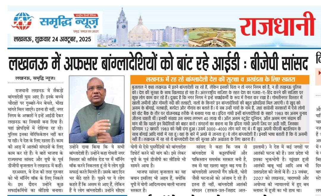 BJP सांसद ID विवाद, लखनऊ ID बांटने का आरोप, बांग्लादेशियों को पहचान पत्र, लखनऊ प्रशासन, भारत राष्ट्रीय सुरक्षा, latest news Uttar Pradesh, यूपी breaking news, लखनऊ, बांग्लादेशी नागरिक, फर्जी आईडी, बीजेपी सांसद, प्रशासन, जांच, राष्ट्रीय सुरक्षा, भ्रष्टाचार, वोटर आईडी, आधार कार्ड