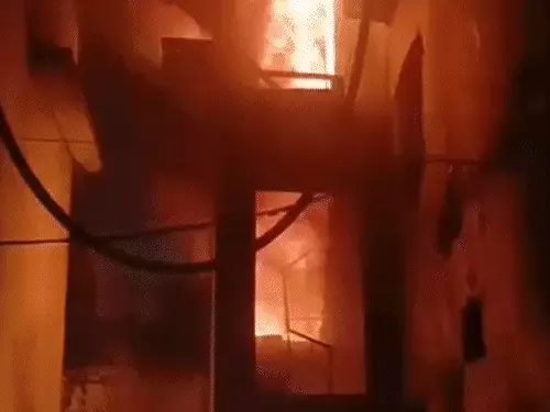 लखनऊ में तीन मंजिला इमारत में भीषण आग — छज्जा गिरने से 5 फायरकर्मी घायल, दमकल की 8 गाड़ियां घंटों तक रहीं मौके पर